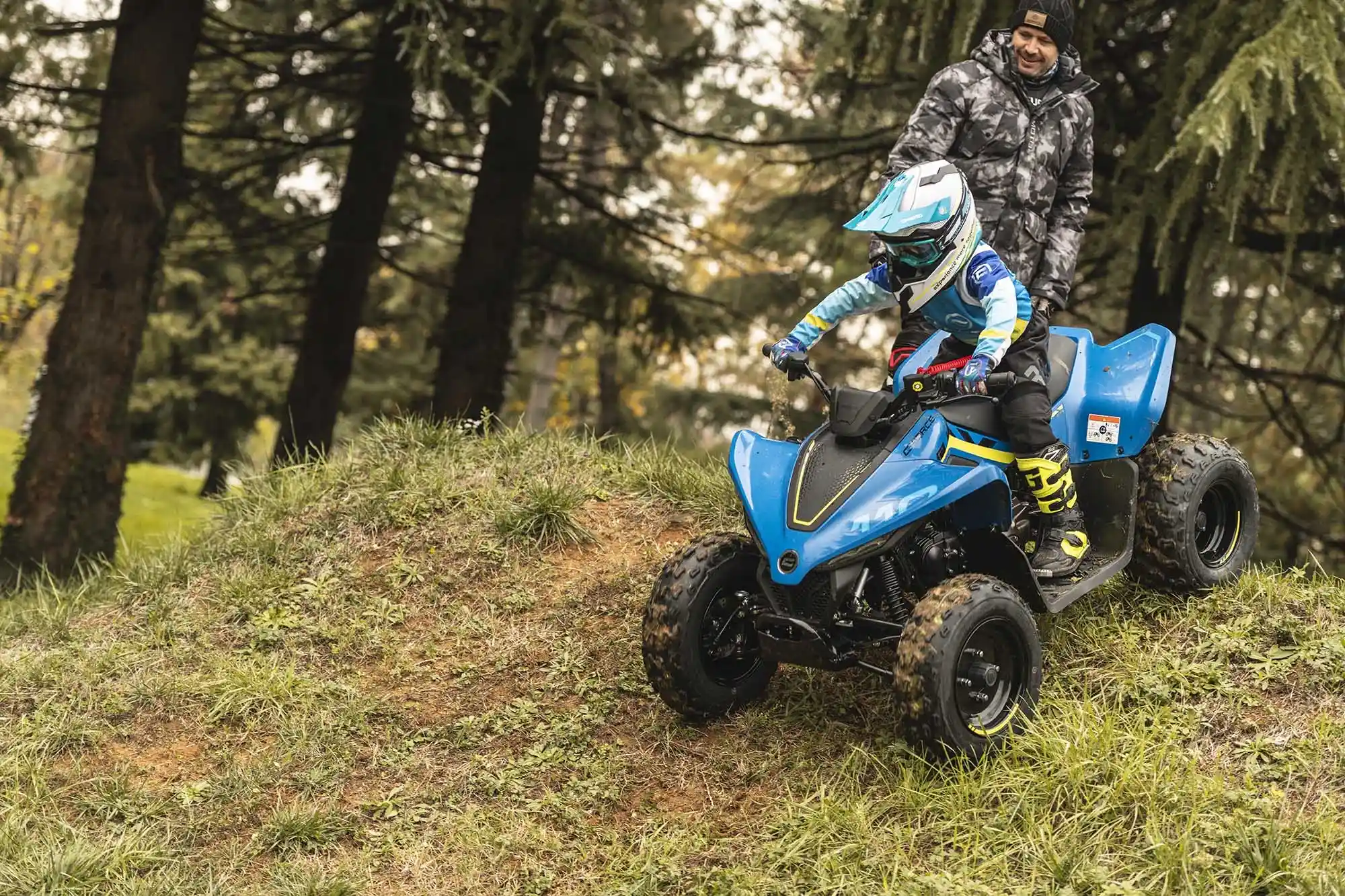 C’est le compromis idéal entre plaisir et découverte de pilotage d’un quad grâce à sa prise en main facile en toute sécurité. Pour tous les enfants à partir de 10 ans.