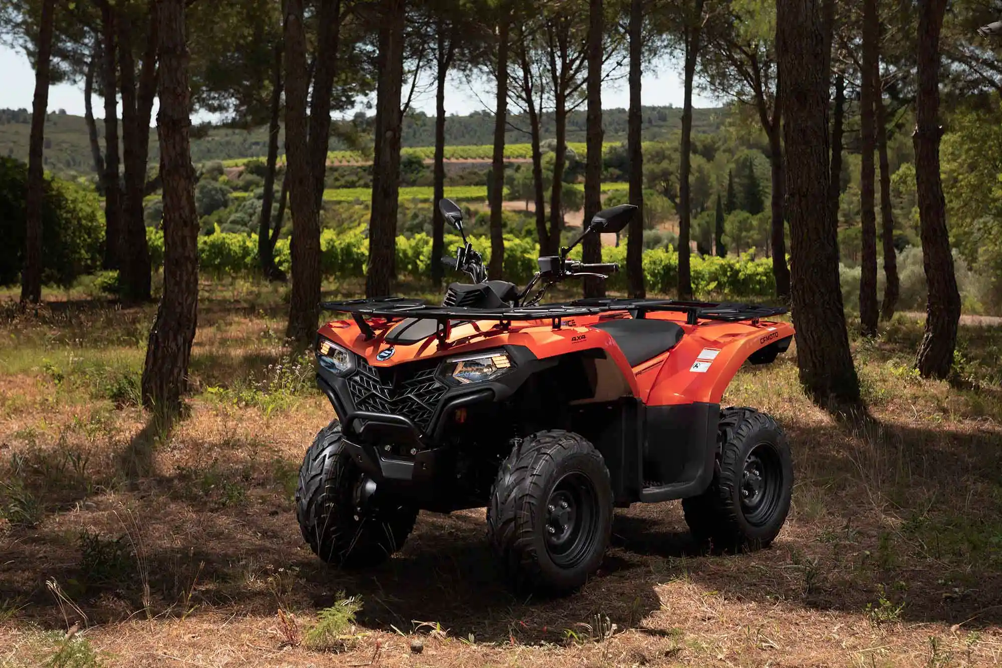 Un quad utilitaire polyvalent. Il est apprécié pour sa maniabilité, son confort de conduite et sa capacité à gérer différents types de terrains, des sentiers aux travaux agricoles.