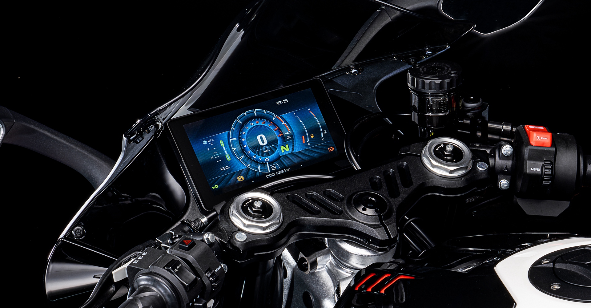 Une moto venue du futur. Son design extérieur, aux lignes tendues, respire la performance et l’esprit de compétition. Ses lignes sculpturales et agressives, associées à un profil acéré, semblent fendre l’air à chaque instant.
